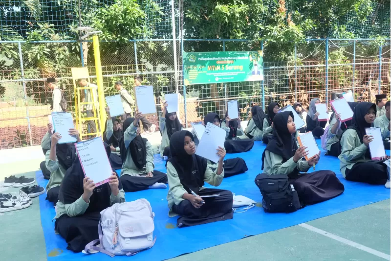 (Humas Madrasah) Serang, 25 Septgember 2025. MTsN 5 Serang menggelar peringatan Maulid Nabi Muhammad SAW pada hari Rabu, 24 September 2025, dengan tema “Dengan Semangat Maulid Nabi, Kita Wujudkan Sekolah yang Berprestasi dan Berakhlakul Karimah”. Acara ini diadakan di lingkungan sekolah.