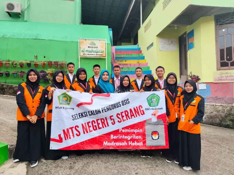 (Humas Madrasah) Serang, 20 November 2025. MTsN 5 Serang menggelar kegiatan seleksi calon pengurus OSIS pada Sabtu, 15 November 2025. Acara ini berlangsung dengan tertib dan penuh antusiasme dari para siswa yang ingin menjadi bagian dari organisasi siswa terbesar di lingkungan madrasah tersebut. Dengan mengangkat tema “Pemimpin Berintegritas, Madrasah Hebat”, kegiatan ini bertujuan melahirkan kader-kader pemimpin muda yang tidak hanya cerdas, tetapi juga memiliki karakter kuat dan jiwa kepemimpinan yang bertanggung jawab.